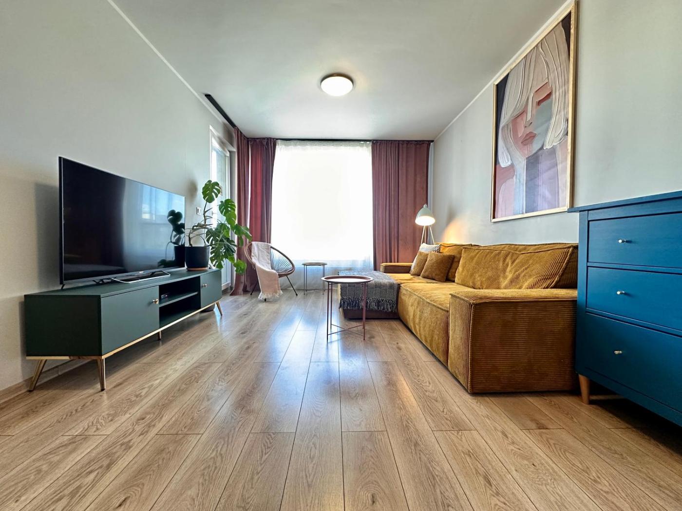 Apartament z 1 sypialnią. Featuring a private entrance, this apartment consists of 1 living room, 1 separate bedroom and 1 bathroom with a shower and a hairdryer. The fully equipped kitchen features a stovetop, a refrigerator, a dishwasher and kitchenware. Boasting a balcony with city views, this apartment also provides a washing machine and a flat-screen TV with streaming services. The unit offers 1 bed. Apartament - 4 osobowy. Powierzchnia pokoju ok.: 44 mkw.